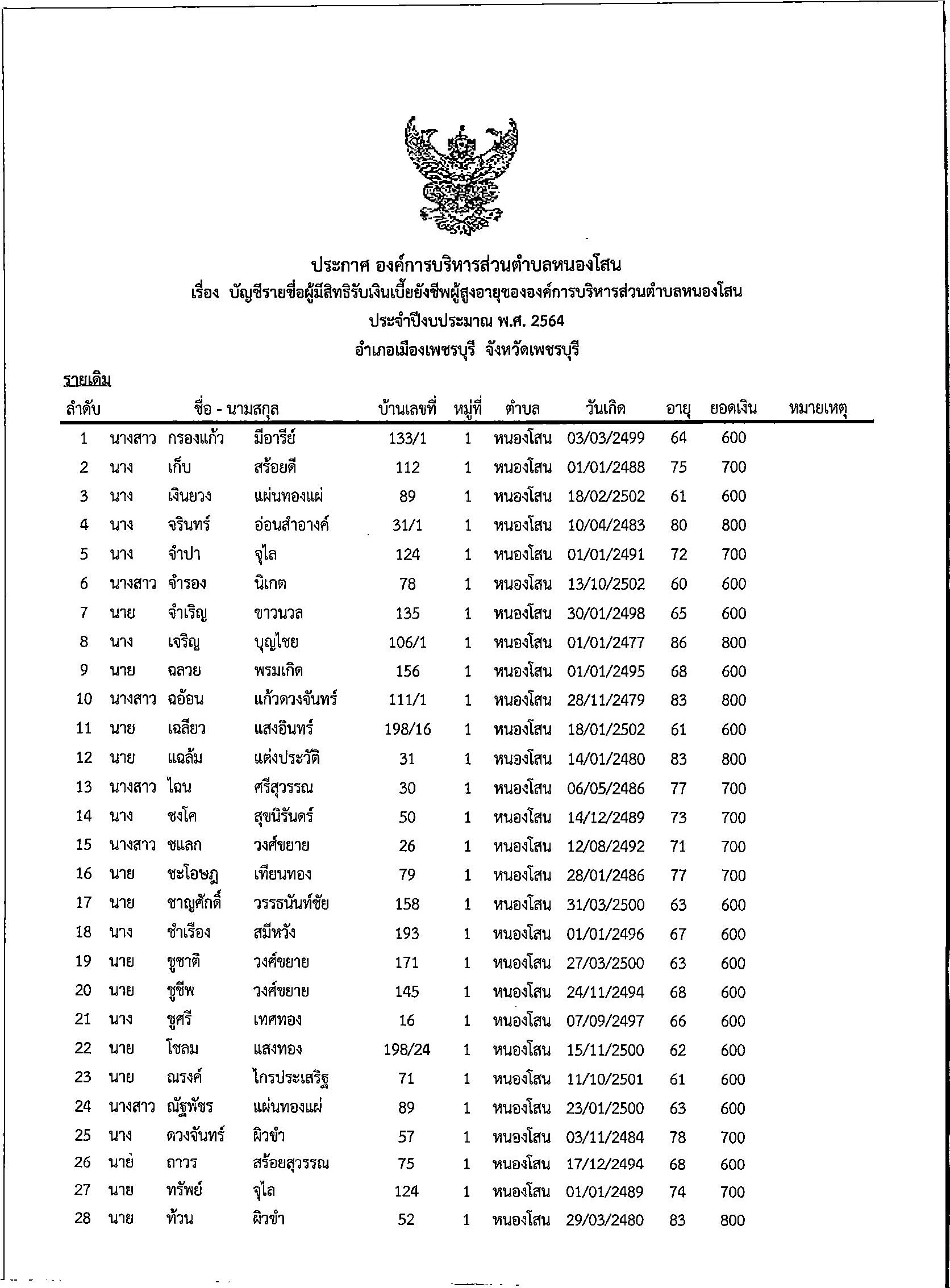 (ข้อมูล ณ เดือนสิงหาคม 2563) ซึ่งเป็นไปตามมติคณะรัฐมนตรี เมื่อวันที่ 28 ม.ค. 2563