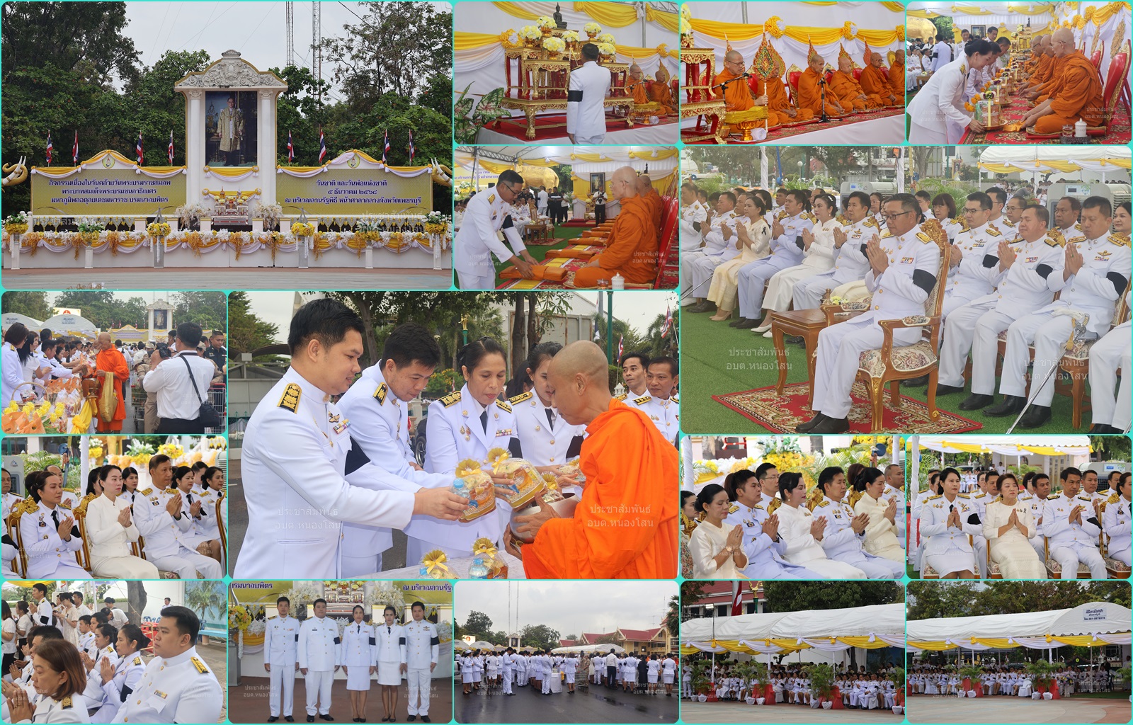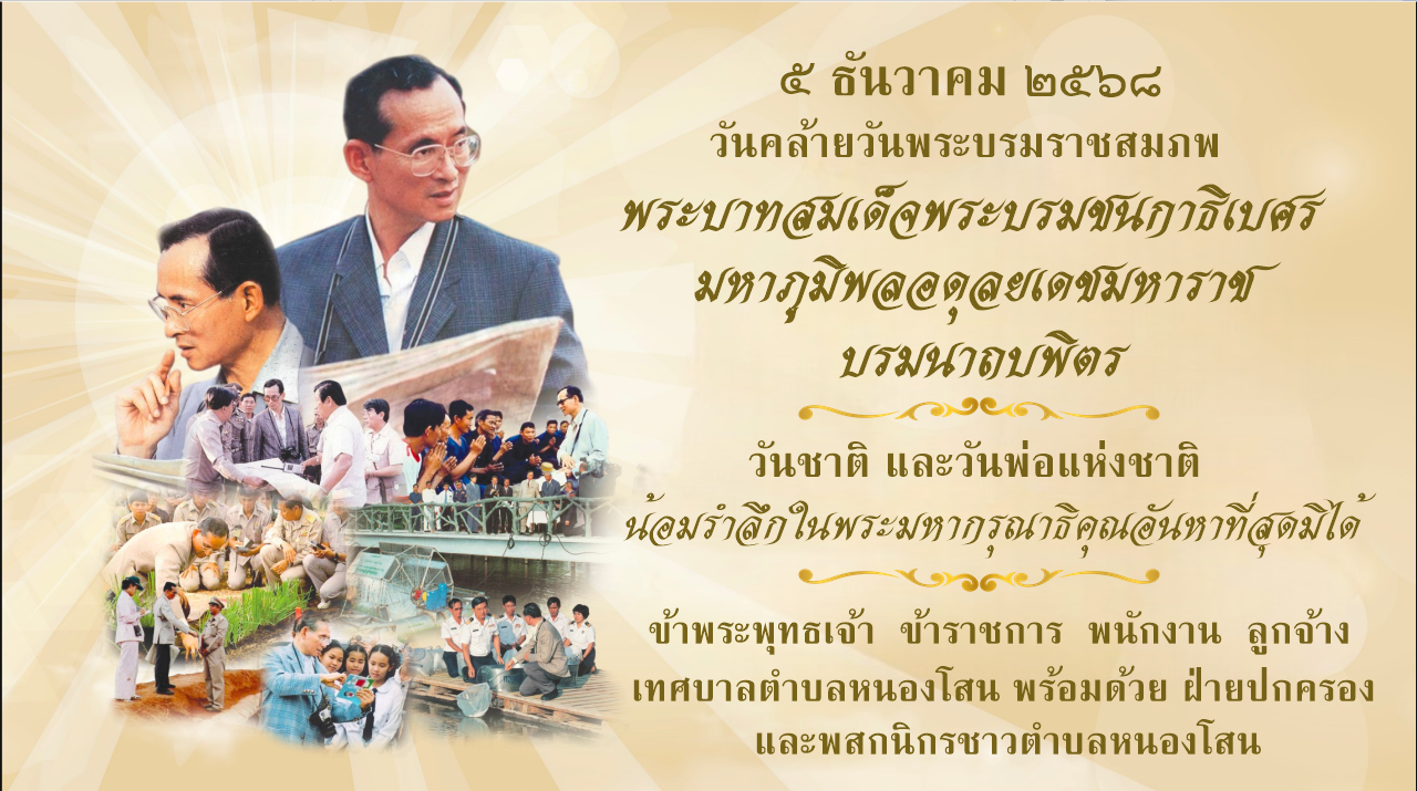 ► วันที่ 5 ธันวาคม 2568 เวลา 06.30 น. เจ้าหน้าที่เทศบาลตำบลหนองโสน ร่วมพิธีเจริญพระพุทธมนต์ ทำบุญตักบาตร ถวายเป็นพระราชกุศล และร่วมวางพุ่มดอกไม้เบื้องหน้าพระบรมฉายาลักษณ์ พระบาทสมเด็จพระบรมชนกาธิเบศร มหาภูมิพลอดุลยเดชมหาราช บรมนาถบพิตร เนื่องในวันคล้ายวันพระบรมราชสมภพ วันชาติและวันพ่อแห่งชาติ ณ ลานรัฐพิธีศาลากลางจังหวัดเพชรบุรี โดยมี ร้อยตำรวจโทภพชนก ชลานุเคราะห์ ผู้ว่าราชการจังหวัดเพชรบุรี เป็นประธาน พร้อมด้วย รองผู้ว่าราชการจังหวัดเพชรบุรี , ปลัดจังหวัดเพชรบุรี , หัวหน้าส่วนราชการ , เหล่ากาชาดจังหวัดเพชรบุรี , ข้าราชการและผู้เข้าร่วมพิธีจากทุกภาคส่วน